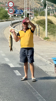 Danach fuhren wir zur nahegelegenen Grenze und waren nach kurzer Zeit wieder in Albanien. Im Ohridsee gibt es viele Fische und die Verkäufer standen direkt am Straßenrand.