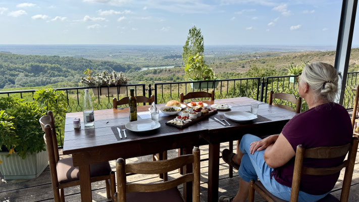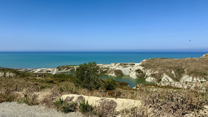Nach weitern 150 km, immer nordwärts, kamen wir auf dem Weingut "Albanica Winery" an. Auf einem kleinen Parkplatz besteht die Möglichkeit zum Übernachten. Das war perfekt, denn nach dem Essen im dazugehörigen Restaurant haben wir eine Weinprobe gemacht. Auf der erhöhten Terrasse konnten wir dabei sogar in der Ferne das Meer sehen. Die meisten seiner Weine, erzählte uns der Winzer, sind sehr süß, aber er hatte auch trockene Weine, die waren aber schon zu trocken. Am Ende hat uns nur einer überzeugt.