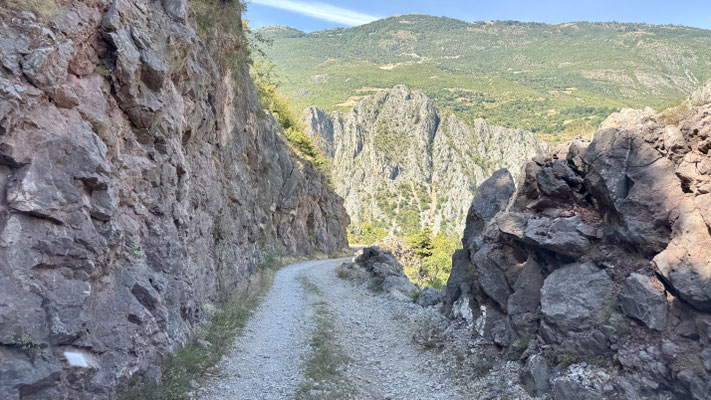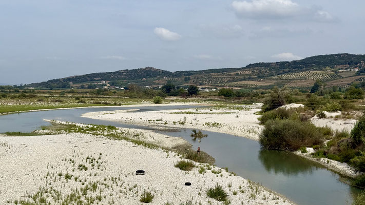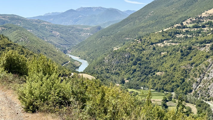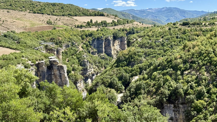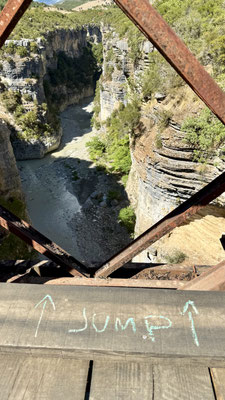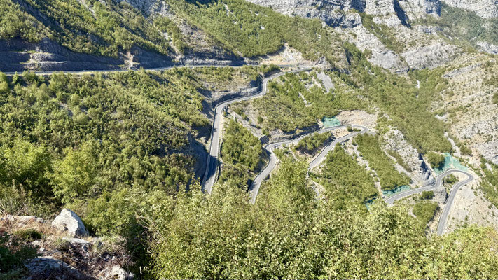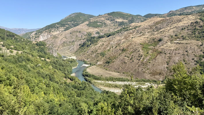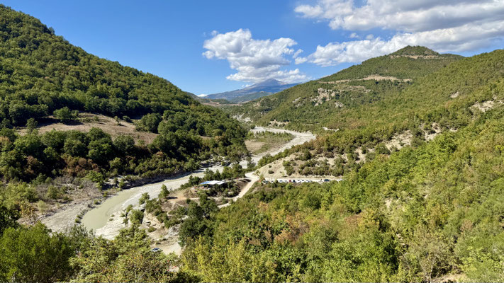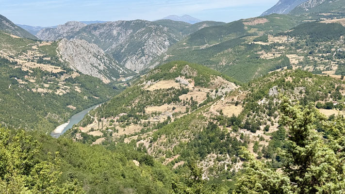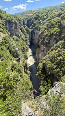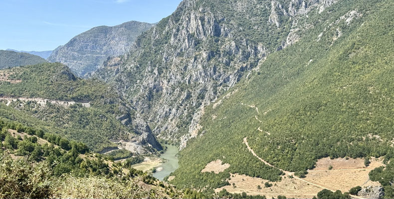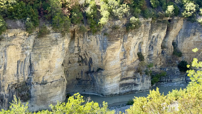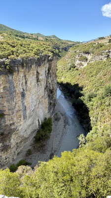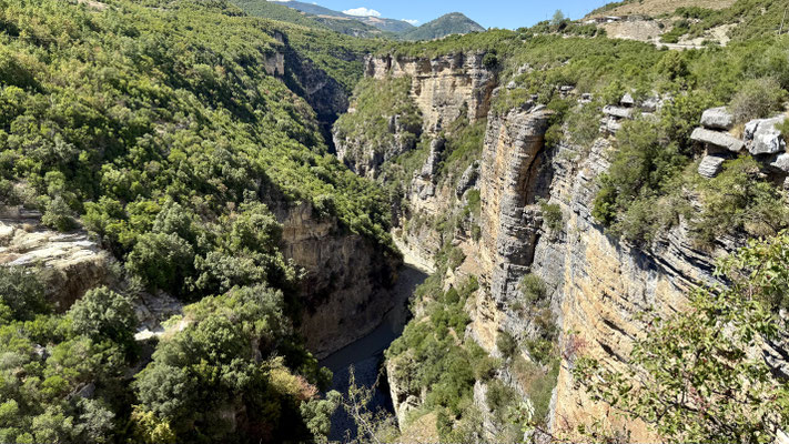 Also ging es nochmal durch Berat hindurch, auf die geteerte SH72 bis nach Corovoda. Ab da hatten wir einige Aussichtspunkte auf die Schlucht mit dem Fluss Osum, leider ist das Wasser grad kieselgrau. Mit teilweise 80 Meter hohen Felswänden ist es ein beeindruckendes Panorama.