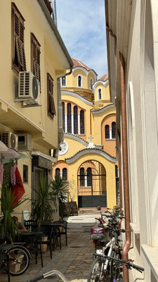 Eigentlich wollten wir uns die Stadt Shkodra anschauen, aber wir haben keinen Parkplatz für uns gefunden. Sind für solche Städte doch etwas zu groß. Der Verkehr war geprägt von Radfahrern, die so fahren und ihr Rad abstellen wie es gerade passt. Die PKW wurschteln sich auch irgendwie durch. Das Viertel, durch das wir kamen, sah aber nett aus.