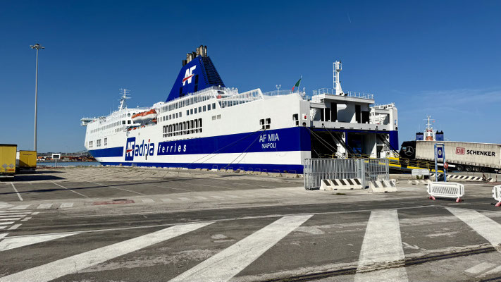 Die Überfahrt war dann ein Traum, spiegelglatte See, wir haben prima geschlafen. Morgens kamen wir pünktlich um 9:00 im Hafen von Ancona in Italien an.