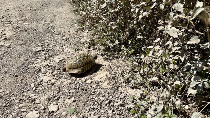 In einem kleines Restaurant saßen wir im Garten, mehrere Schildkröten waren dort als Rasenmäher unterwegs.