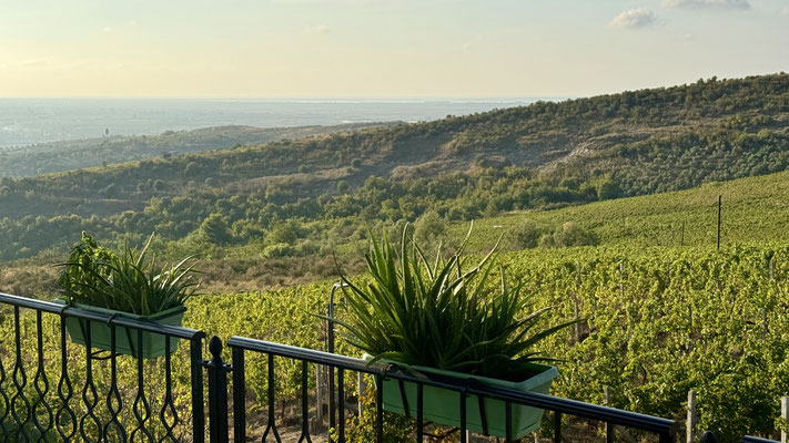 Erfrischt durch ein Eis traten wir den Weg zurück zum Heim an, nach 10 km durften wir unsere Füße hochlegen. Die Campingplatzbetreiber brachten uns einen Teller mit Weintrauben und grünen Feigen aus heimischer Ernte. Die grünen Feigen überraschten uns mit ihrem feinen Geschmack.