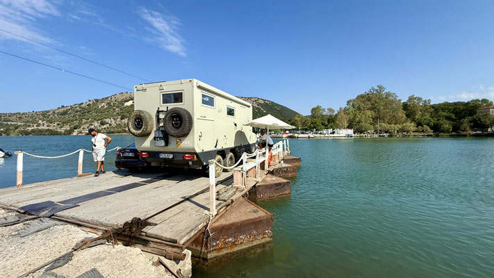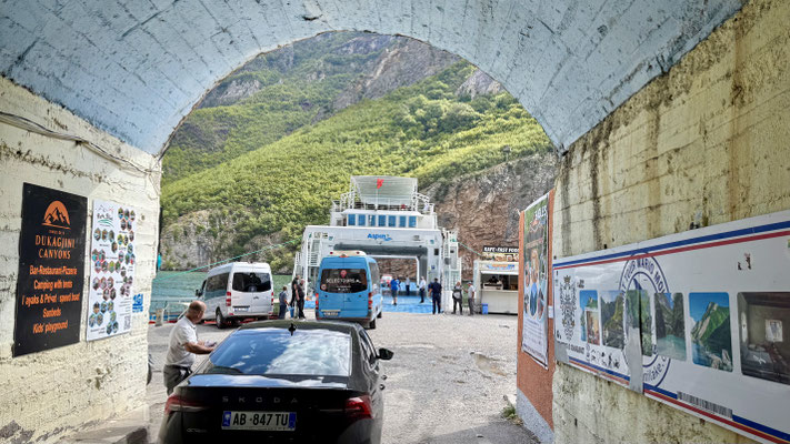 Der Ort Koman ist straßenmäßig der letzte Punkt. Von hier aus kommt man nur noch mit einer Autofähre über den Koman-Stausee bis nach Fierza. Und das machen wir dann morgen.