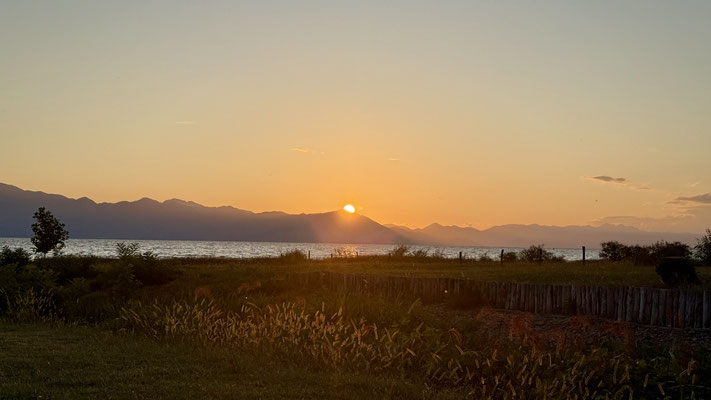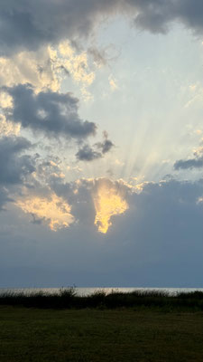 Heute ist ein Tag Fahrpause. Nachts gab es die angekündigten heftigen Regenfälle, heute vormittag war es noch regnerisch mit Gewitter, ab mittags dann nur noch Sonne pur. Abends dann ein schöner farbiger Sonnenuntergang.