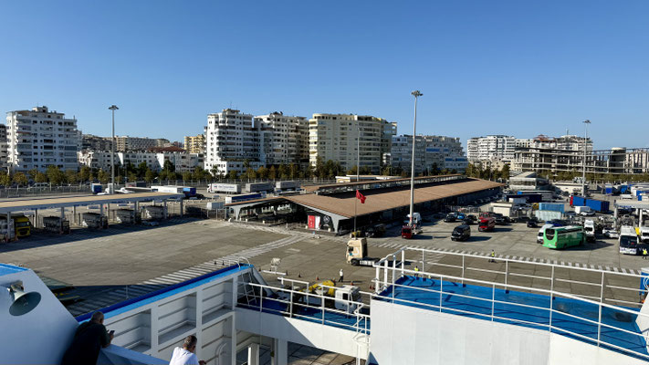 So, heute geht’s in Durrës auf die Fähre. Da sind wir mal ziemlich gespannt. Im Internet war relativ viel negatives über Adria Ferries zu lesen. (Schmutzige Kabinen, extrem enges Parken, unfreundliches Personal,…)