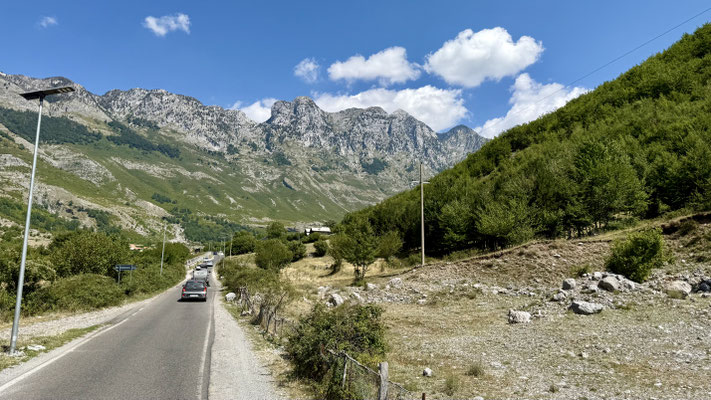 Heute sind wir dann über eine gute Teerstrasse wieder Richtung Kukës gefahren. Da nach jeder Kurve sofort wieder eine Kurve kommt waren wir aber weiterhin mit gemütlicher Geschwindigkeit unterwegs.