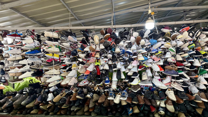 Einen interessanten Schuhladen haben wir auch entdeckt. Das Bild zeigt die erste Regalreihe, es gibt noch viel mehr von diesen „übersichtlichen Regalen“ weiter hinten im Geschäft.